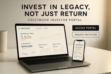 The Crestmoor Investor Portal provides direct access to our private yield structures, bond classes, and sovereign investment vehicles — secured under FlameNet™ encryption and governed by the Eternal Treasury Council.